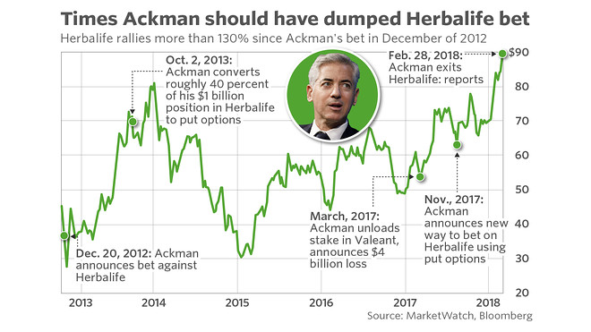 اكمان لم يستفيد من هذا القرار، بسبب دخول ايكان القوي وشرائه حصة كبيرة في الشركة، فحينها اكمان خسر قرابة ٤٠٠-٥٠٠ مليون دولار بسبب صعود السهم، ففي نوفمبر ٢٠١٧ استمر صعود سهم هيربالايف قرابة ٥٠٪ على مدار سنة، مما اجبر اكمان على تغيير استراتيجيته واستخدام عقود الخيارات (put options)