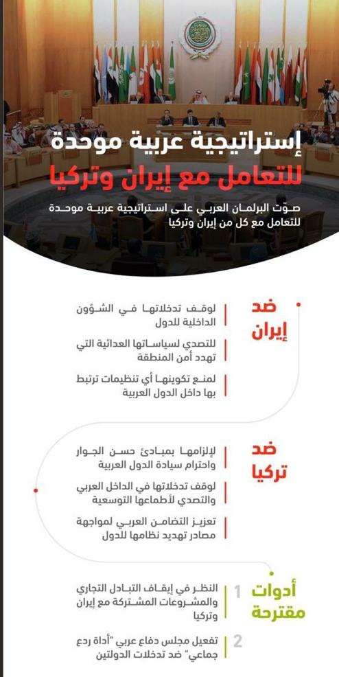 صوت البرلمان العربي @arabparlment على إستراتيجية عربية موحدة للتعامل مع كل من #إيران و #تركيا.
