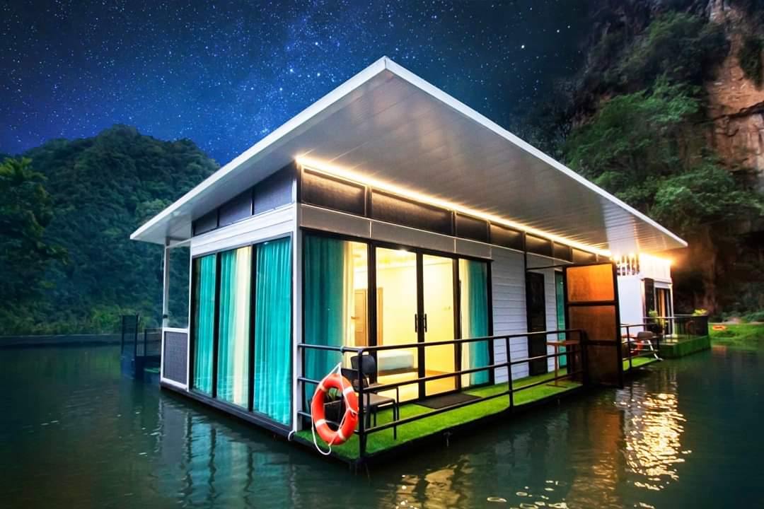 منتجعات عائمة على البحيرة يمكن استئجارها والاستمتاع بالانشطة في المدينة الترفيهية