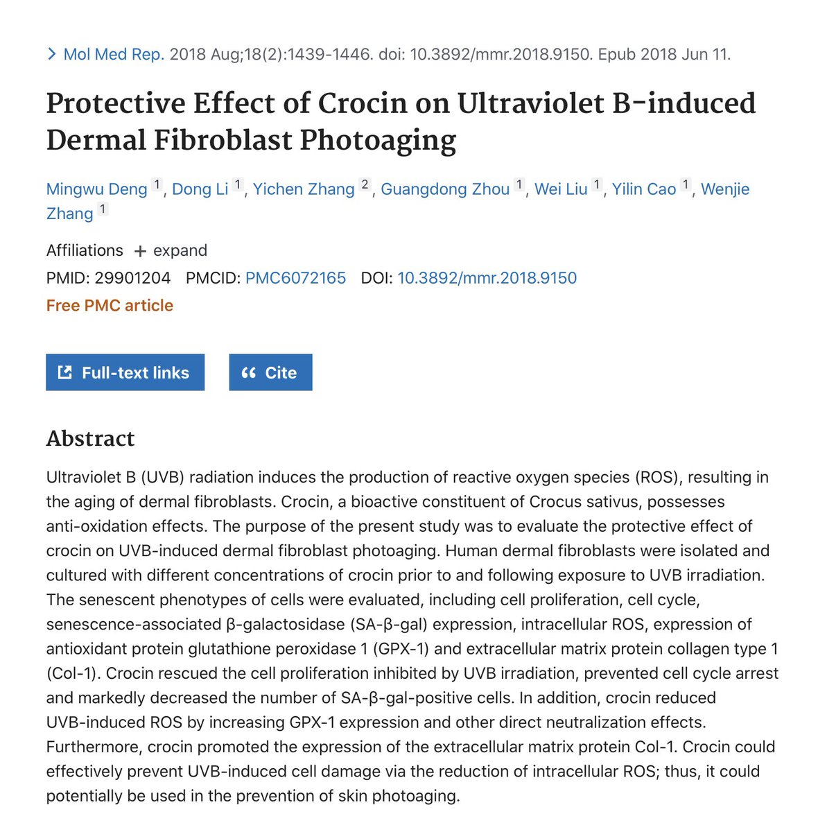 يحتوي الزعفران على صبغة كروسين، وهي مادة واعدة كمكمل مضاد للشيخوخة، قد يمنع تلف الخلايا ويقلل الالتهاب، مما قد يعزز طول العمر ويمنع التدهور العقلي.