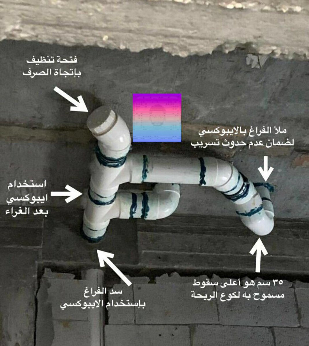 @Archi_Critic ٣- يجب ان يكون وضع طبه التسليك مرتفع باتجاه السقف لسهولة استخدامها في حال حصول انسداد ولضمان عدم حصول تهريب منها