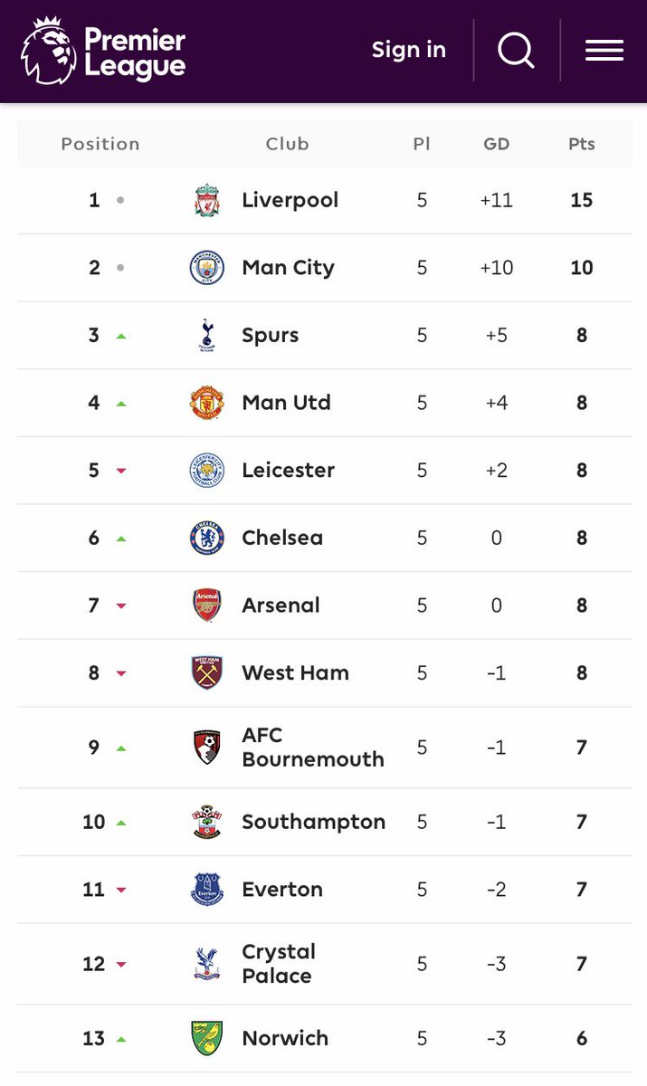 المفاجأة في الجولة ٥ هي خسارة السيتي من نورويتش صاحب المركز ١٩ بنتيجة ٣-٢ ليتسع الفارق الي ٥ نقاط بين السيتي و ليفربول