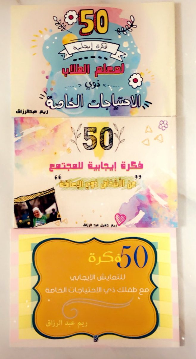 "٥٠" فكرة إيجابية للمجتمع عن الأشخاص ذوي الإعاقة. "٥٠" فكرة للتعايش الإيجابي مع طفلك ذي الاحتياجات الخاصة. " ٥٠" فكرة إيجابية لمعلم الطلاب ذوي الاحتياجات الخاصة. @ReemAbdulrazzak