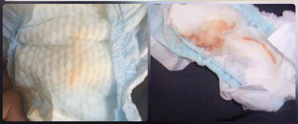 🔹 الكثيـر من الآباء والأمَّهات في هذه الفترة يقصدون المستشفيات بداعي أنَّ ابنتهم أو ابنهم يتبوَّل دمًـا ! وأنَّهم غيَّروا الحفَّاظات فوجدوا فيها دمًـا أو لون بول ابنهم بنِّي يميل للأحمر.. أو أنَّ ابنهم لم يتبوَّل منذ 12 ساعة أو أكثر..