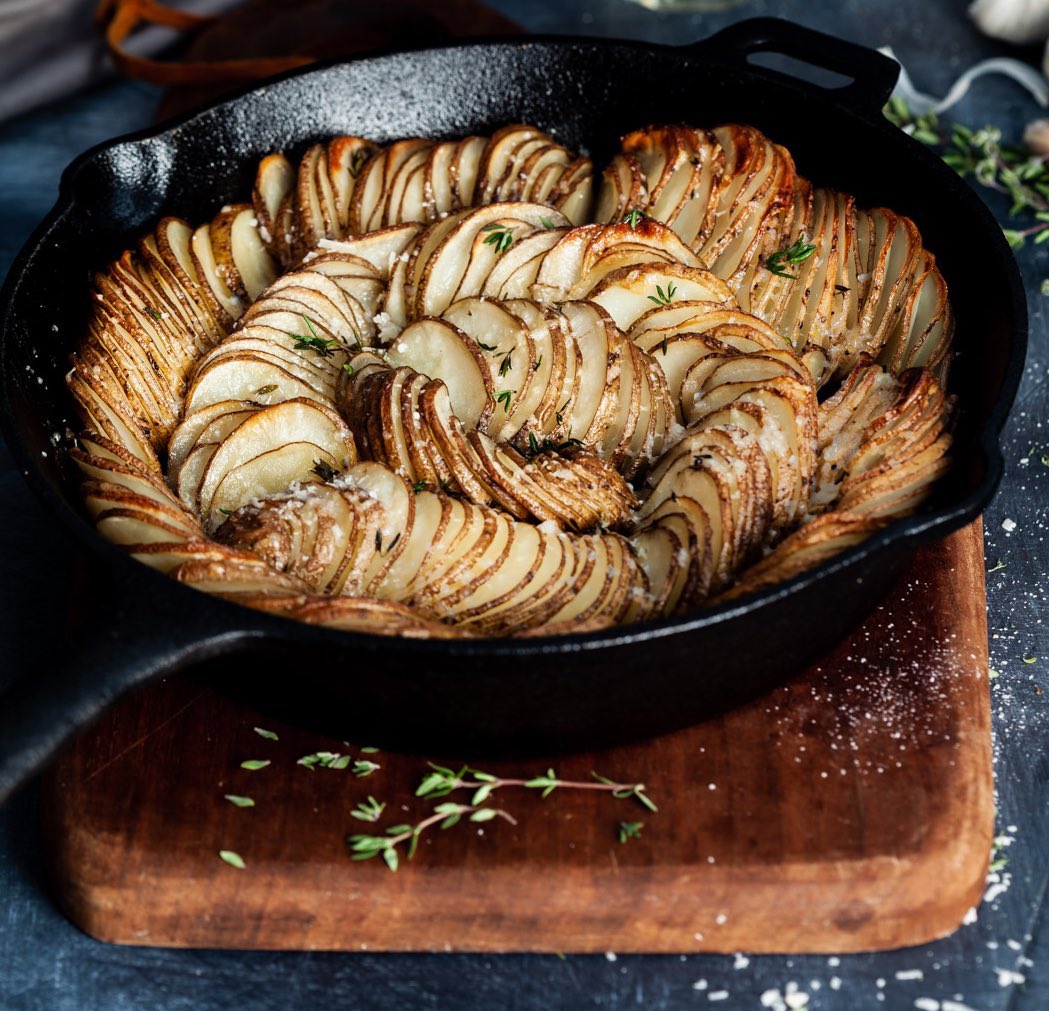 بطاطس محمرة بالثوم والبارميزان مع الزعتر