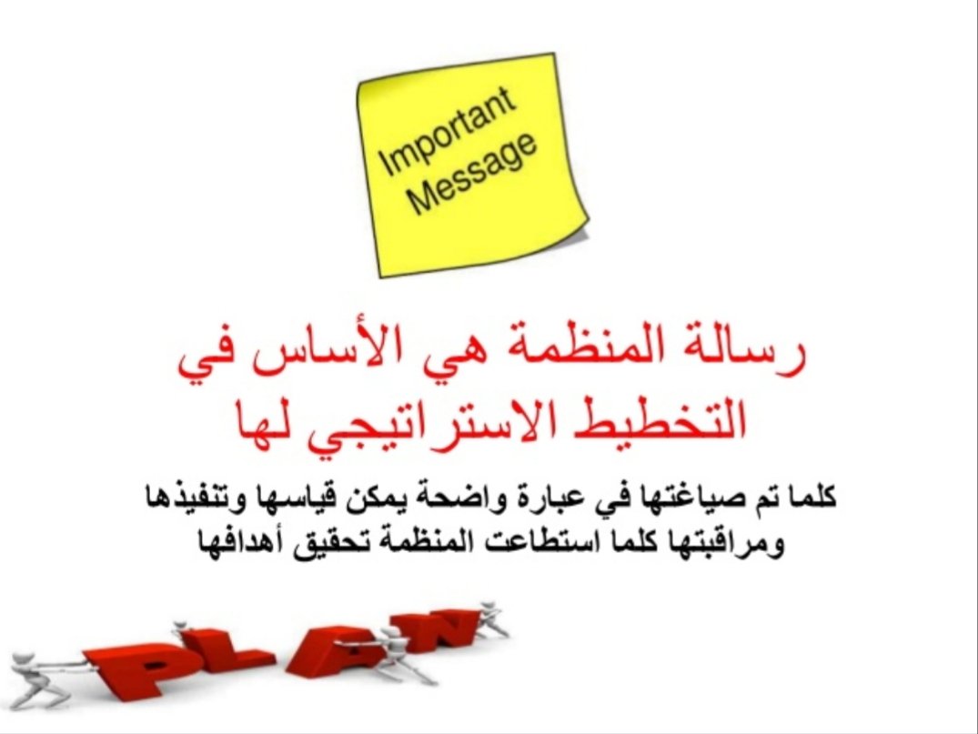 *بعد التركيز في الجوانب السابقه يتم تحديد رسالة المنظمه التي يجب أن تكون محدده وواضحه تبين من خلالها غاية المنظمه ومستقبلها والسلع التي تنتجها ونوعيتها ومستوى الجوده.