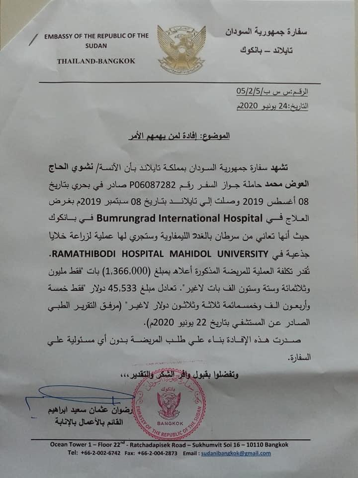 يا احبابنا نشوي ♥️ إتقرر ليها زراعه خلايا جزعيه بعد شهرين بتكلفة 45 الف دولار يعني 6 مليار جنيه سوداني..