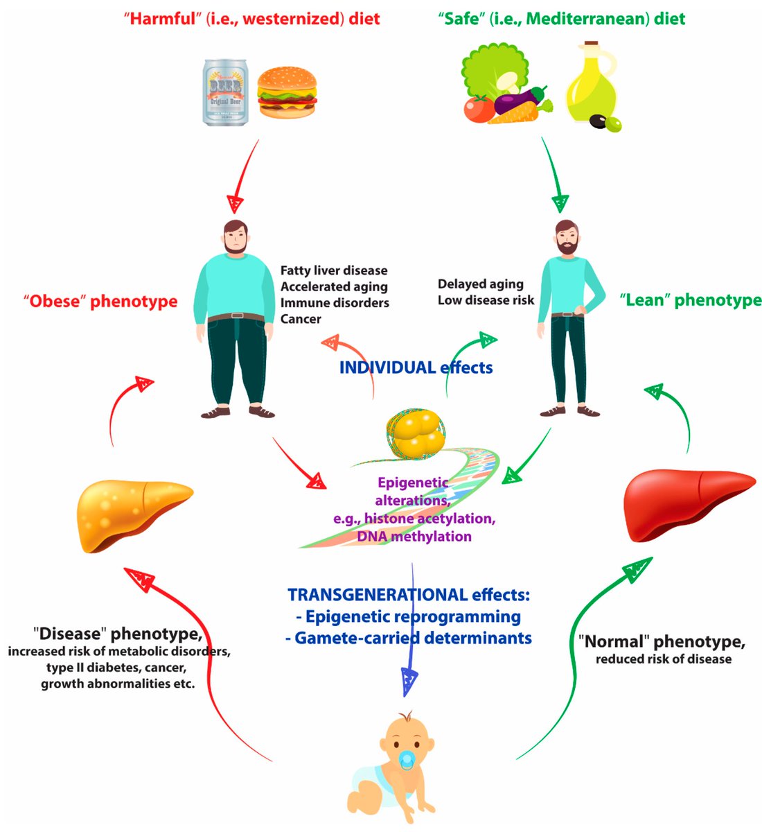 فمثلا أظهرت الدراسات أن الأطفال الذين ولدوا خلال فترة المجاعة الهولندية من 1944-1945 زادت معدلات الإصابة بأمراض القلب التاجية والسمنة بعدما تعرضت الأمهات للمجاعة أثناء الحمل المبكر مقارنة مع غيرهن اللاتي لم يتعرضن للمجاعة.