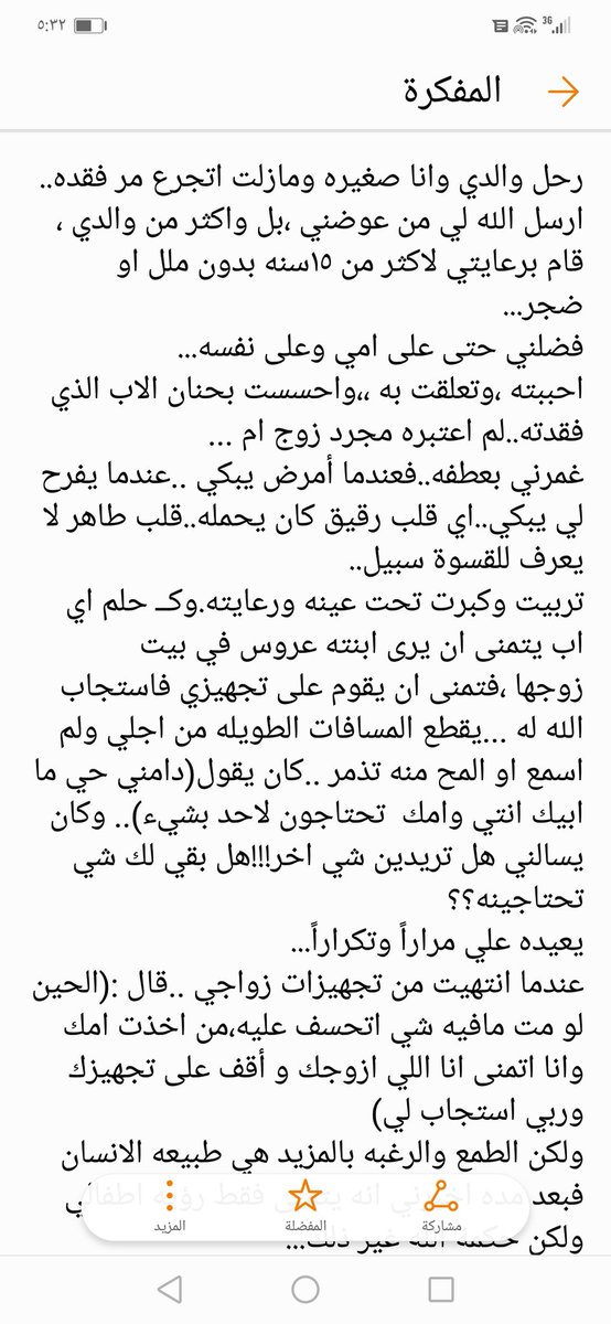 ودعته وحاله وحالي لايعلم بهما إلا الله ، ودعته وكلي ذهول وإعجاب ، وسبحان الله !! لاأدري أأعجب من وفائه مع ربيبته وأفعال الرجال النادرة في زمنِنا ؟ أم من سخائه معي رغم بساطته ؟