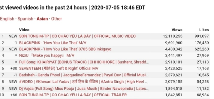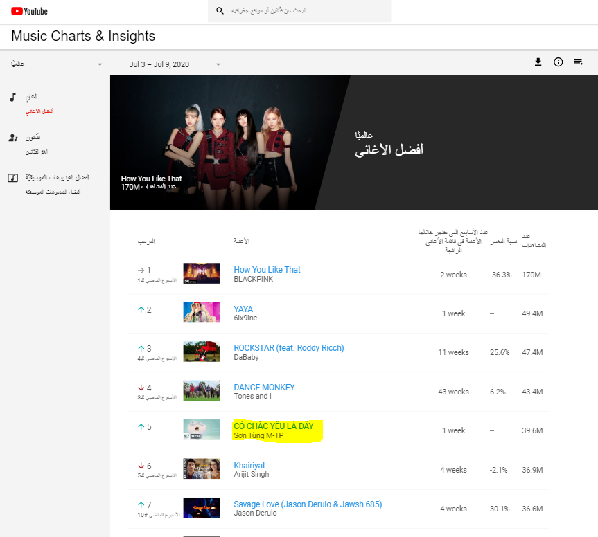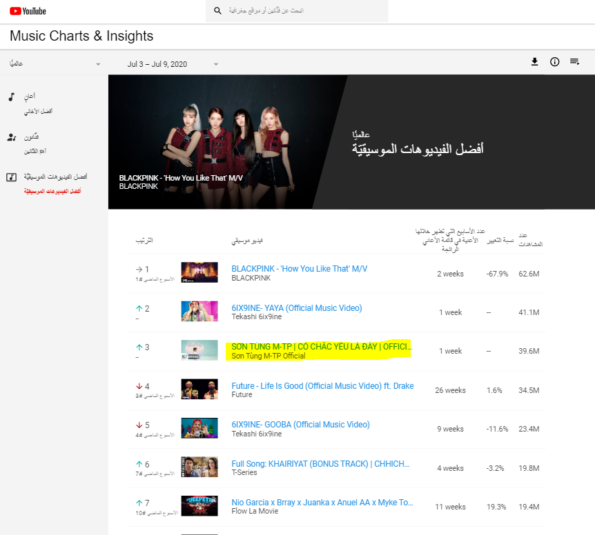 [update-#Rank]الرسم البياني العالمي الأسبوعي على Youtubeمن 7/3 إلى 7/9