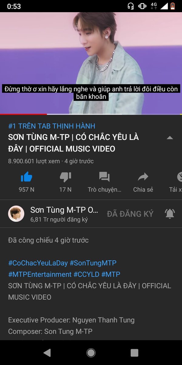 مرة أخرى ، يقع @sontungmtp777 في صدارة مخططات YouTube حول العالم.