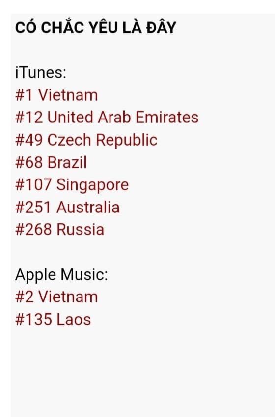 [Chart-update] #CoChacYeuLaDay الاول في ايتونز فيتنام 🇻🇳 و12 في ايتونز الامارات 🇦🇪 . 😍👏🥳