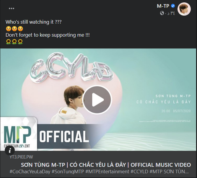 200705 |#YouTube| اصدر @sontungmtp777 الفيديو الموسيقي