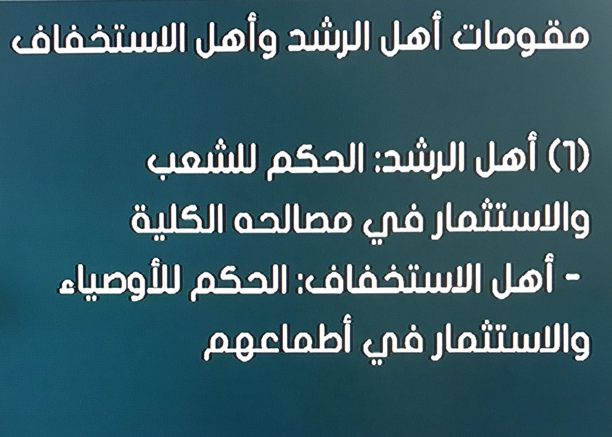 الركن الاول لاهل الرشد هو الحكم لله اي انه حق لكل البشر ولا احد يفرض ارادته على الاخر والاستثمار في البشر لصالح البشر