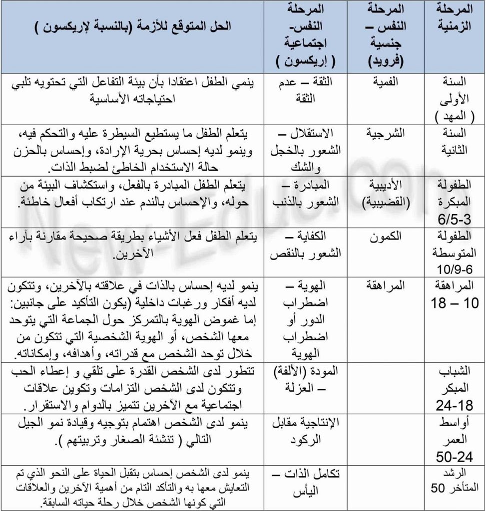 إريك إريكسون للتنمية النفسية والاجتماعية كان إريكسون معروف في التحليل النفسي وهو مشهور بمراحل النمو الثمانية، تمر فيها صحة الفرد من الولادة. #ثريد :