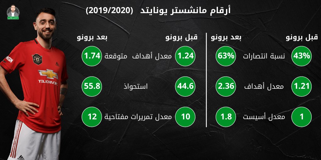 تطورت أرقام مانشستر يونايتد بشكل ملحوظ مع برونو #فيرنانديز، خاصة على الصعيد الهجومي.