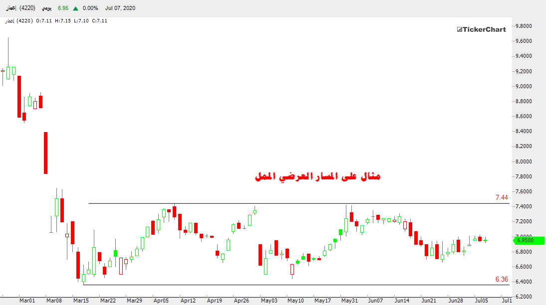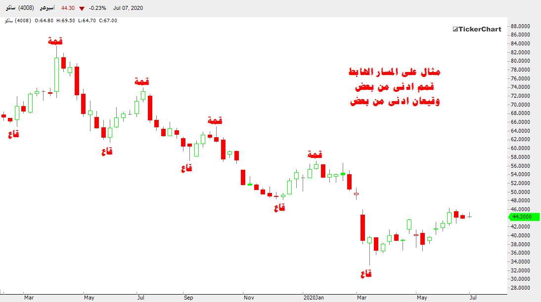 في مسار السهم هناك دعوم في حال الهبوط ومقاومات في حال الصعود وينطبق ذلك على المسار الأفقي وهذه الدعوم والمقاومات تكون ثابتة كالقمم في حال الصعود والقيعان في حال الهبوط ثابتة لاتتغير وهناك دعوم ومقاومات متحركة وهي الترندات المائلة فهذي تتحرك وتتشكل تبعا للسعر المتحرك صعودا وهبوطا