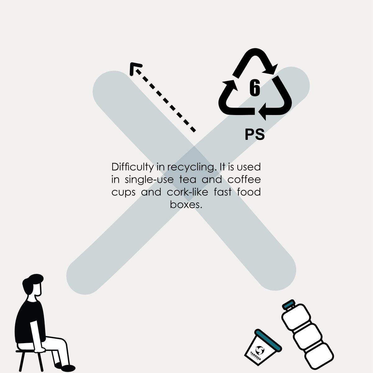 🍂 الرمز السادس يسمى إختصاراً ب PS وهو من أصعب أنواع البلاستيك في إمكانية إعادة التدوير.