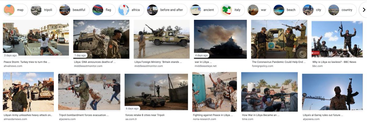 تلاحظو لما تخشو على محركات البحث مثل قوقل وبينغ وتكتبو ليبيا بعدين تغيرو البحث بالصور تلقو صور الحروب والصواريخ للأسف…