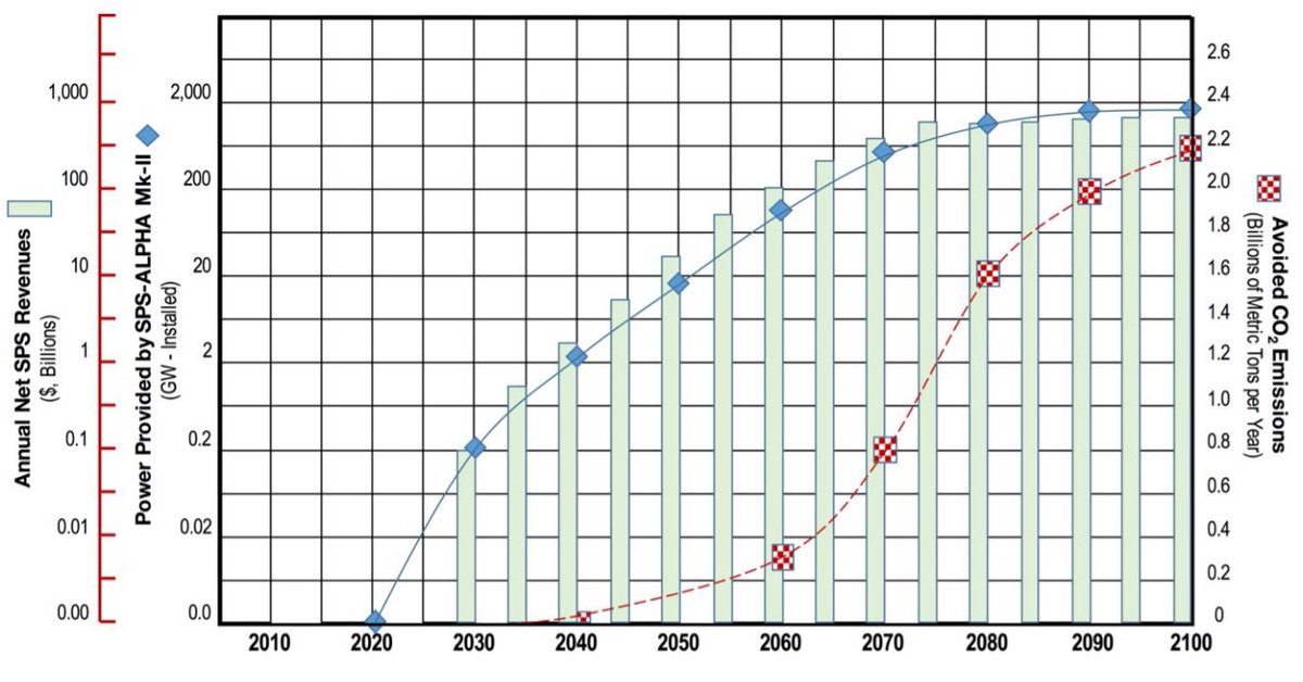 يتم بناؤهم واحداً تلو الآخر خلال بضعة سنوات، إذا اكتمل هذا المشروع سيتم توفير طاقة عالية الكفاءة يمكن نقلها بأقل تكلفة لكل بقعة على سطح الأرض فيديو للاستزاده هنا: