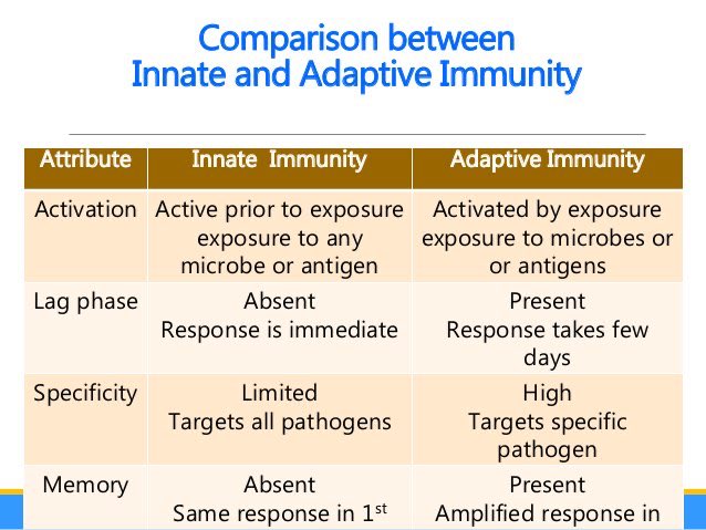 Addaptive هو من اسمه تكيفي يعني بعد ما حصل ال inflammation ياخذ المعلومات من الانيت ويهاجم ويتكيف مع الالتهاب وكل يوم يغير طريقته لانه فيه ذاكره ويحفظ تفاصيل الجسم الغريب الين يقتل المرض