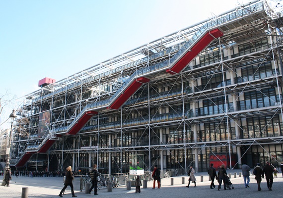 هذا الفكر ليس مستغرب ولعل أبرز الأمثلة التي أجادت ذلك موجودة في مركز بومبيدو للفنون بباريس حيث استخدم عناصر الحركة في الواجهة الخارجية بحيث أصبحت العنصر التشكيلي للواجهة.