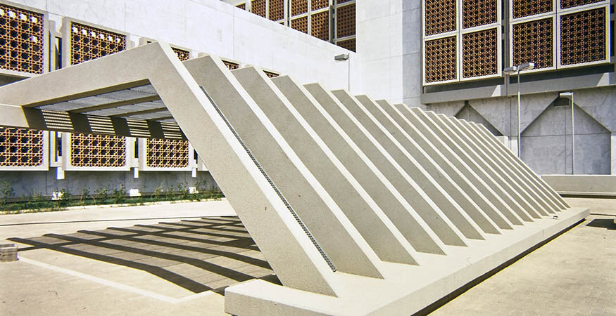 عمارة حقبة الثمانينات وما جاورها لا تخلو من استخدام كاسرات الشمس وهذا مبنى وزارة الرياضة الذي اكتمل بنائه 1980.