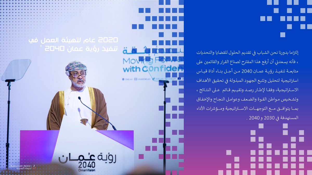 وفي مارس 3 مارس 2020، أشار جلالة السلطان هيثم بن طارق _حفظه الله_ في اجتماع مجلس الوزراء بأن < عام 2020 هو عام لتهيئة العمل في تنفيذ #رؤية_عمان_2040>، فاستذكرت تغريدتي السابقة وشرعت في العمل على تطوير المؤشر الوطني التزاما بدورنا نحن الشباب في تقديم الحلول للتحديات المستجدة.