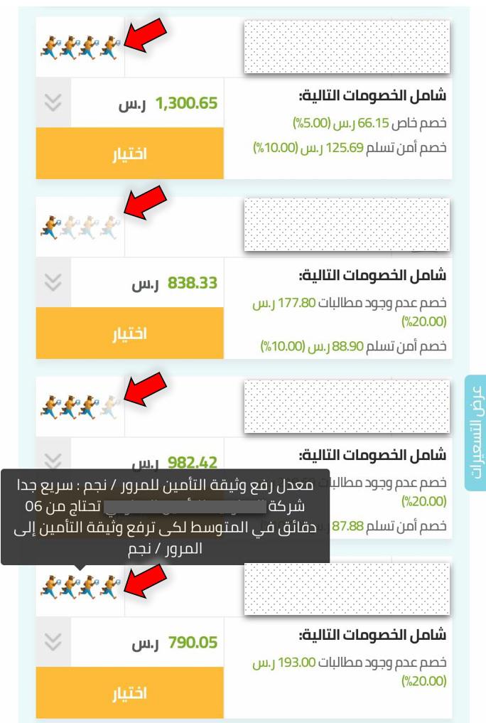 اما في الحالات المستعجلة للتأمين كنقل ملكية السيارة أو إصدار إستمارة، فمن المهم النظر في سرعة ربط شركة التأمين للوثيقه مع المرور/نجم.