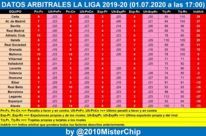 كان بإمكانهم نشر أرقام أي موسم من السنوات الأخيرة، 2015/16 مثلاً، الذي حققه برشلونة بفارق نقطة واحدة أمام ريال مدريد بعد استفادته من 19 ضربة جزاء وواحدة فقط ضده. مع طرد 9 لاعبين من خصومه مقابل 1 برشلوني فقط!