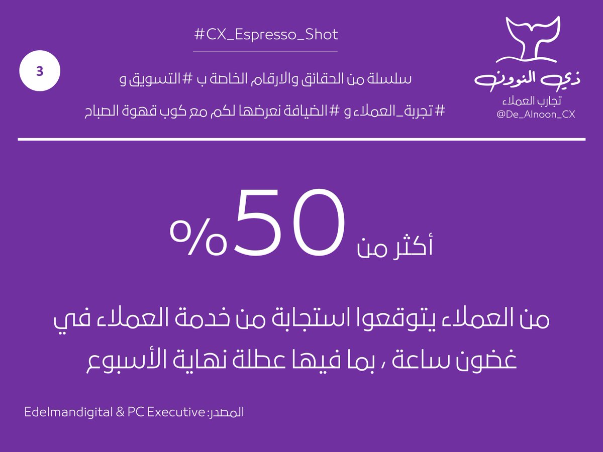 التغريدة 3⃣ : من سلسلة الحقائق والارقام الخاصة ب #التسويق و #تجربة_العملاء و #الضيافة نعرضها لكم مع كوب قهوة الصباح 👇