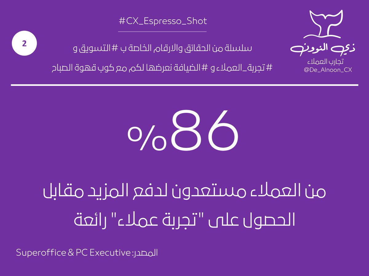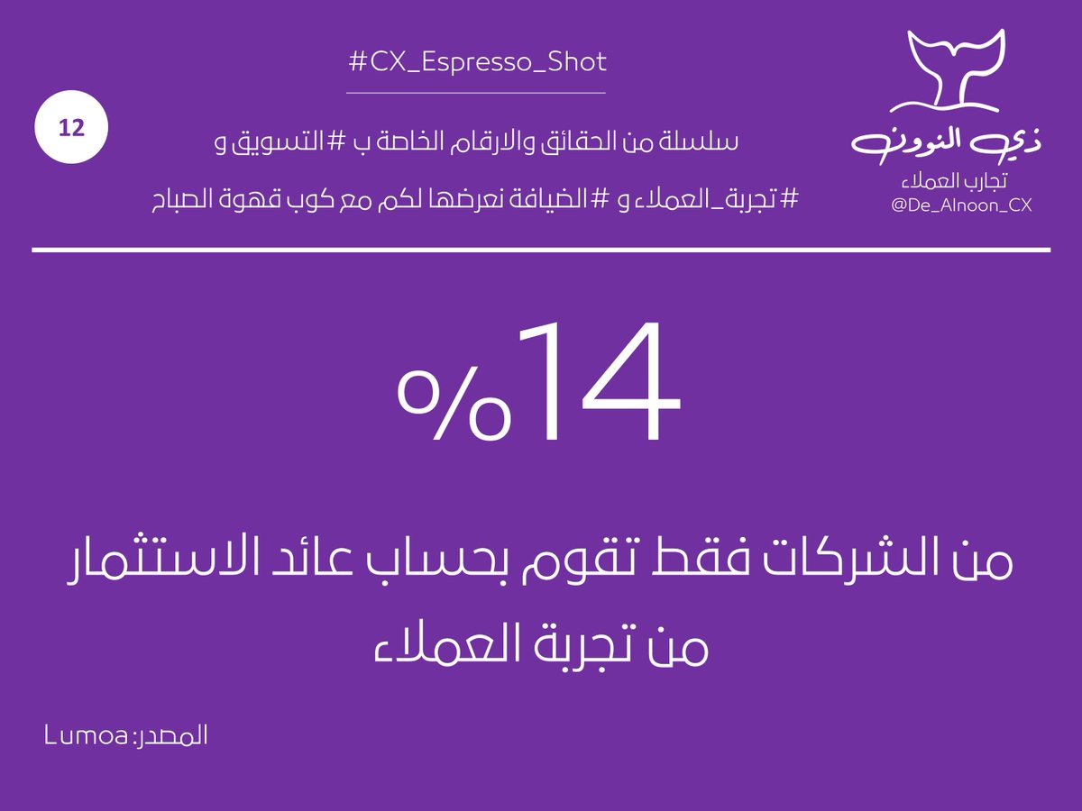 التغريدة 1⃣4⃣ : من سلسلة الحقائق والارقام الخاصة ب #التسويق و #تجربة_العملاء و #الضيافة نعرضها لكم مع كوب قهوة الصباح 👇