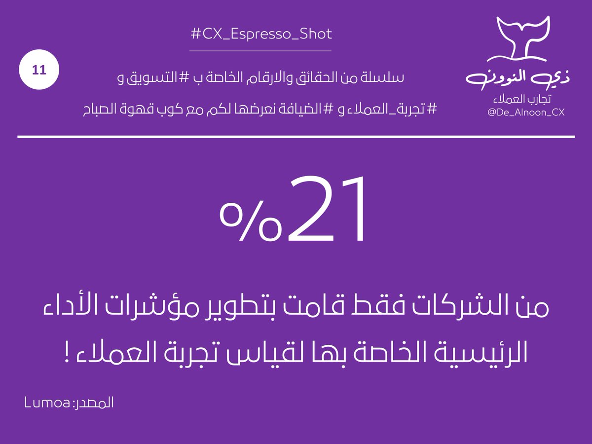 التغريدة 1⃣1⃣ : من سلسلة الحقائق والارقام الخاصة ب #التسويق و #تجربة_العملاء و #الضيافة نعرضها لكم مع كوب قهوة الصباح 👇