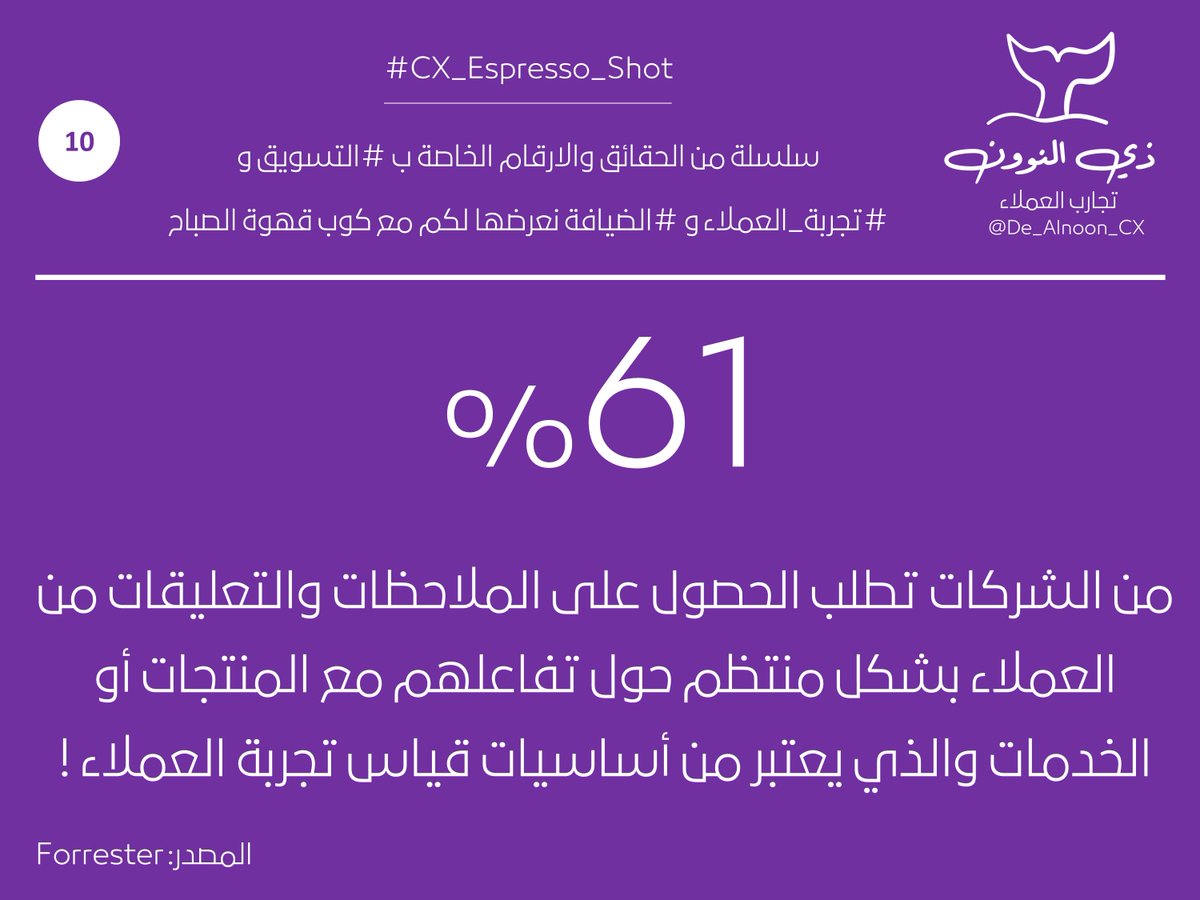 التغريدة 🔟: من سلسلة الحقائق والارقام الخاصة ب #التسويق و #تجربة_العملاء و #الضيافة نعرضها لكم مع كوب قهوة الصباح 👇