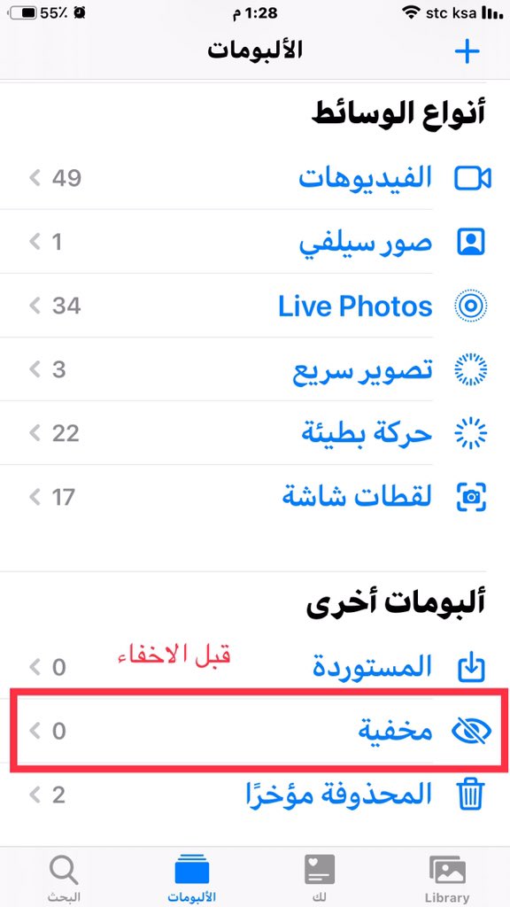 24 - الان يمكن اخفاء قسم الصور المخفيه في البوم الصور