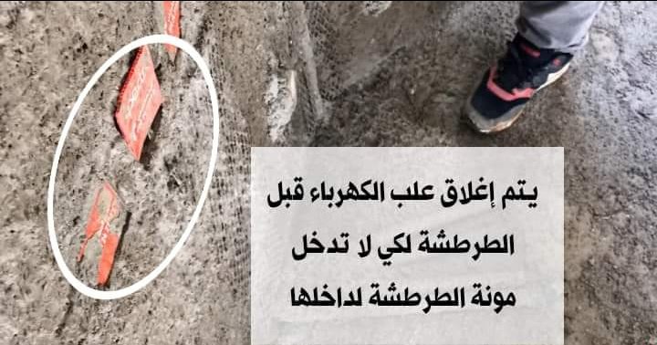 -إغلاق جميع الفتحات قبل الطرطشةبالمونة الاسمنتية
