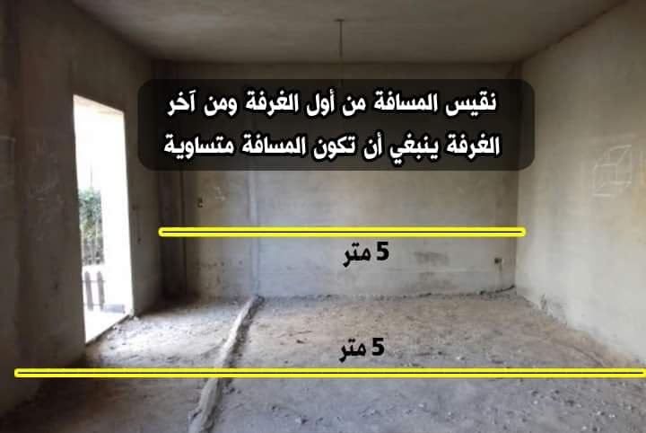 - يتم عملية تربيع الغرفة للتأكد من أبعاد الغرفة