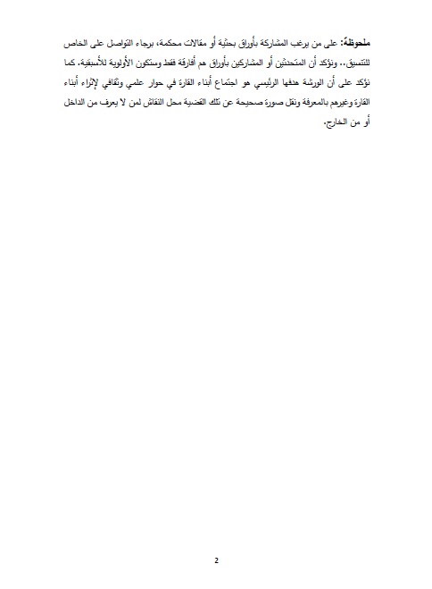 ملحوظة: على من يرغب المشاركة بأوراق بحثية أو مقالات محكمة، برجاء التواصل على الخاص للتنسيق..