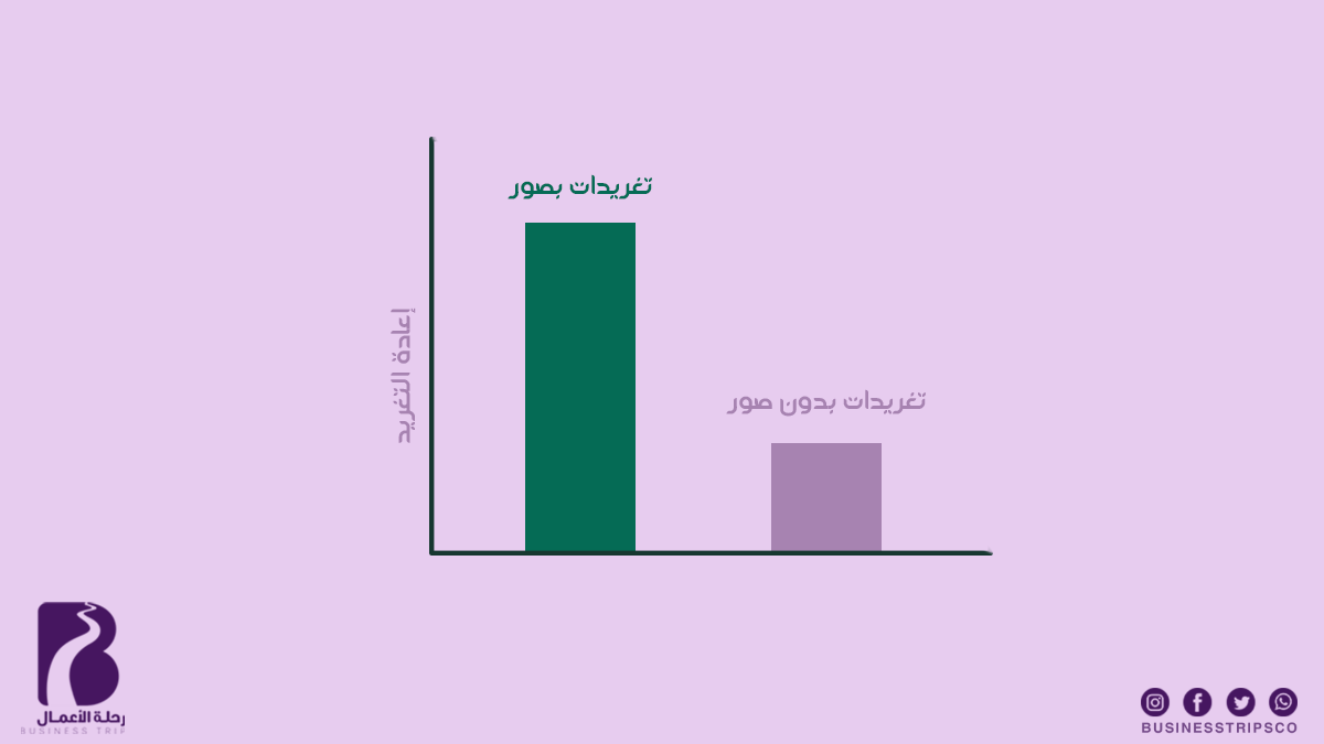 وأيضاً في تويتر، أشار بحث أجرته شركة Buffer إلى أن التغريدات التي تحتوي على صور تحصل على إعادة تغريد بنسبة 150% أكثر من التغريدات التي لا تحتوي على صور