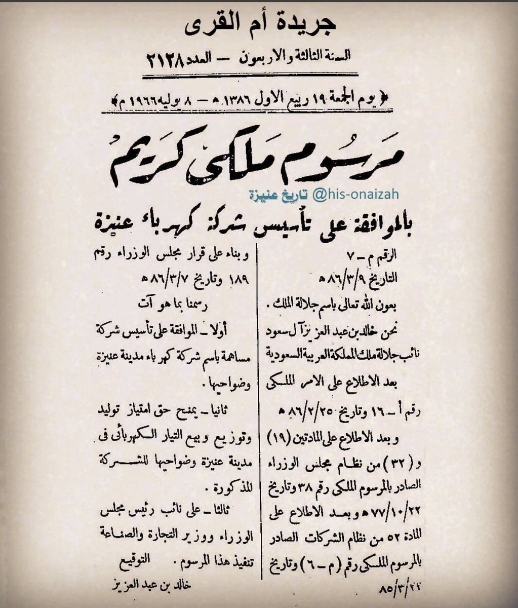 5️⃣أسهم عبدالله الهطلاني في شراء أرض وإنشاء مبنى حديث لإدارة شركة كهرباء #عنيزة وهو المقرالقائم الآن بالمزيرعة كما أسهم في إستيراد مكائن كهرباء ضخمة وحديثة لإنشاء محطة كهرباء جديدة ووظف كثير من الشباب فيها من خريجي الثانوية الصناعية ودعمهم لثقته بهم