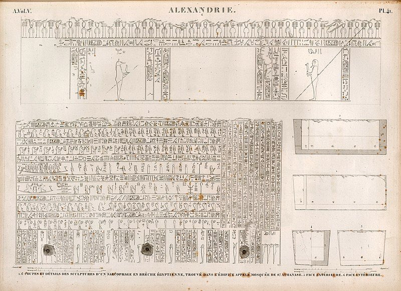 @abdulrahmanfci كان علماء الحمله الفرنسية بيكتبوا وصف اللي شايفينه من غير ما يعرفوا التاريخ ولا اصل الأثر في بعض الأحيان، وكمان مكانتش رموز اللغه المصرية القديمة اتفكت ساعتها، وكان من نظريات الفرنسويين إن ده كان قبر الاسكندر الأكبر