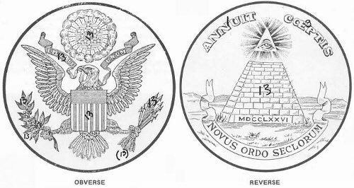 في عام 1935 كتب بول فوستر كيس: "منذ التاريخ 1776 تم وضعه في الجزء السفلي من الهرم [على الختم العظيم] وبما أن الرقم 13 كان مهمًا جدًا في تاريخ الولايات المتحدة وفي رموز الختم ليس من غير المعقول