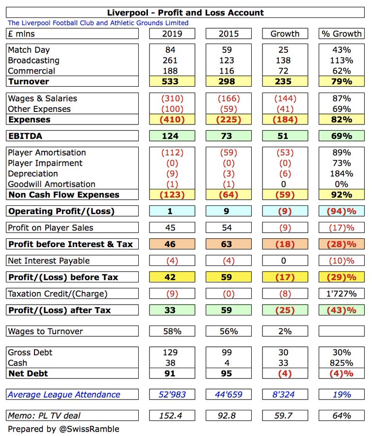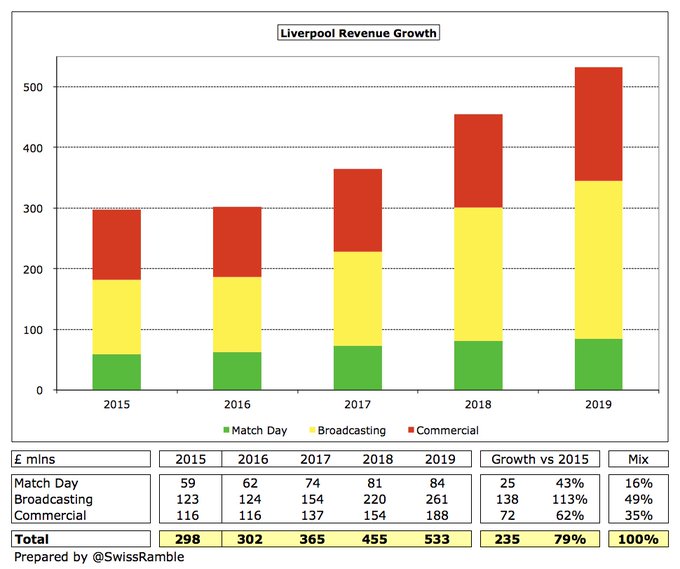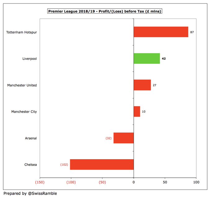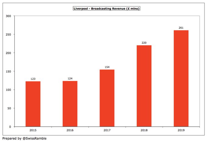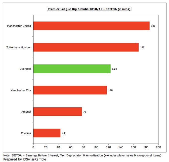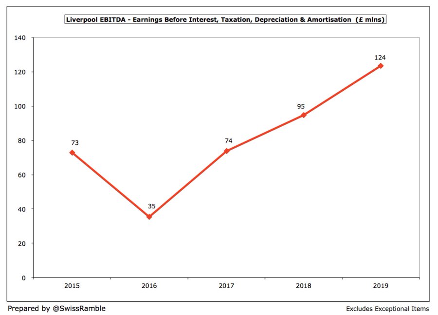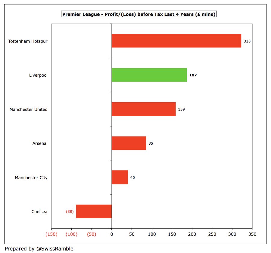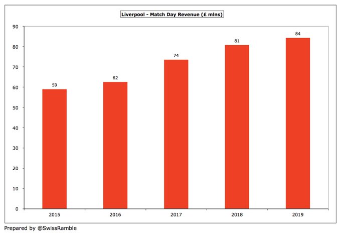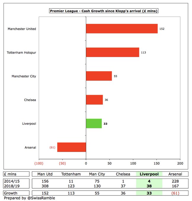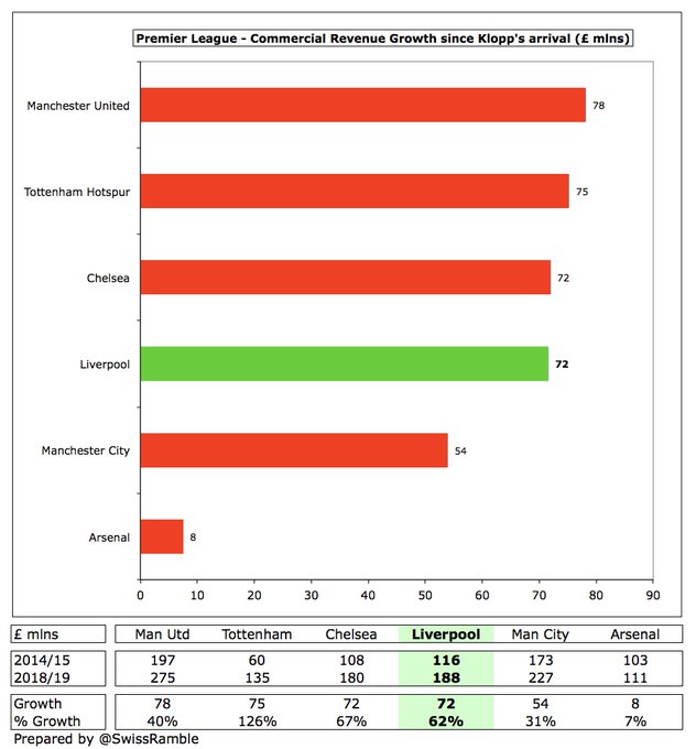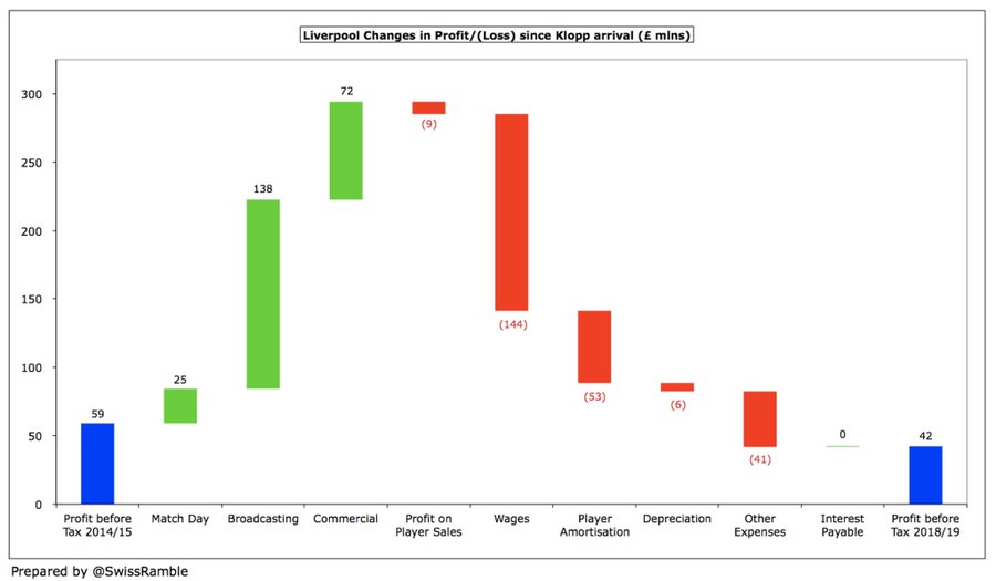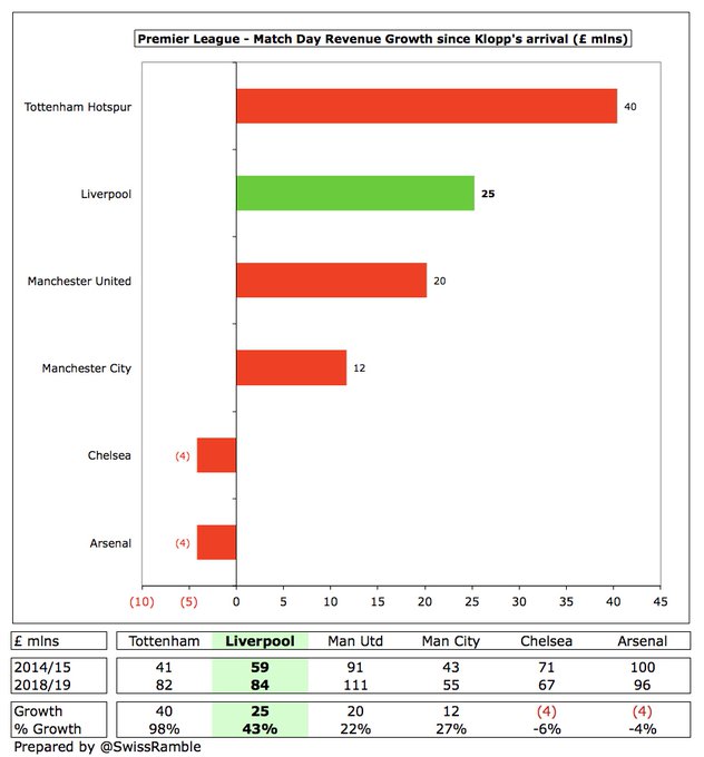 " كلوب قاد ليفربول للنجاح على أرض الملعب ما أدى لزيادة هائلة في إيراداته , وعلى الرغم من قلة استثمار الملاك وزيادة فاتورة الرواتب والإنفاق في سوق الانتقالات إلا أن ليفربول ينفق أقل من منافسيه "