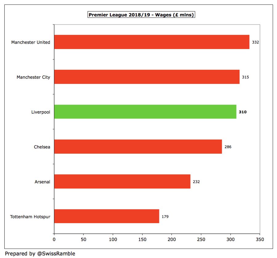 هذا النمو الكبير في الإيرادات صاحبه نمو آخر في المصروفات حيث ارتفعت الرواتب بنسبة 87% من 166 مليون باوند وحتى 310 ملايين باوند وتكلفة أكبر في مبالغ اللاعبين المستحقة سنويا وكذلك مصاريف الإهلاك التي ارتفعت من 3 مليون وحتى 9 مليون