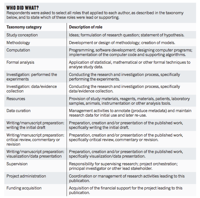 يجب توافر هذه المعايير الأربعة مجتمعة حتى يصبح مؤلفاً، وإذا لم تتوافر جميع المعايير يمكن أن يتم ذكر الاسم في جزء الخاص بالشكر، ولمزيد من التفاصيل يمكن الرجوع إلى الرابط:
