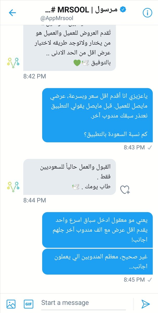 الي حصل والمفاجأة كانت، عدد المهوول من الوافدين الي يعملون بهذه الوظيفة، أصبح من الصعب جدا إيجاد طلب لتوصيله، واحاب ان أشير ان تطبيق مثل مرسول، مندوب التوصيل مضطر انه يقدم عرض اقل سعر ممكن وذلك لسببين..