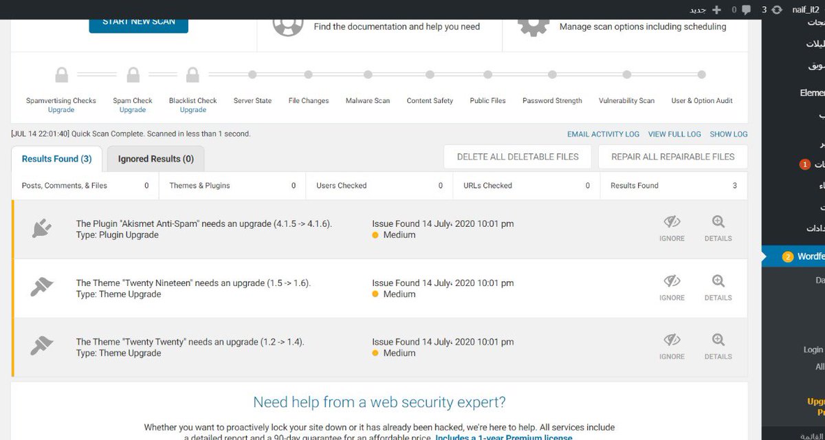 بهذا الثريد تكلمت عن "wordfence" وبعض الخصائص أيضًا اشكر م. عبدالعزيز الشمري على الفحص السابق وننتظر فحص الموقع بعد اضافة الأداة @IT2CAM ، وأتمنى ان كل شي واضح وسهل ، بالتوفيق للجميع ❤️👍 ..
