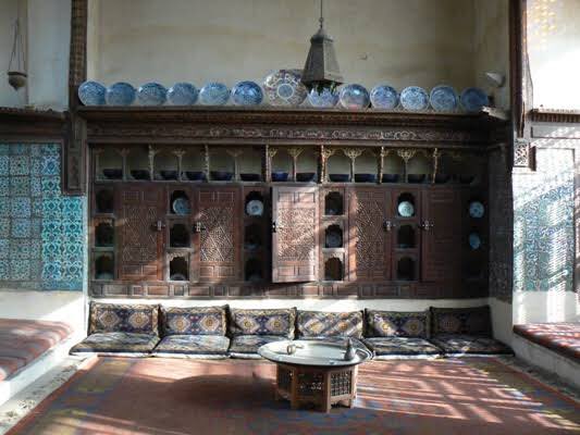 إحدى الغرف التي توجد بالقسم البحري، كسيت جدرانها بـ"القيشاني" الأزرق المزخرف برسوم نباتية دقيقة، وتضم مجموعة من الأواني صنعت من الخزف والسيراميك الملون، لذلك يرجح إنها كانت "مطبخ" البيت،