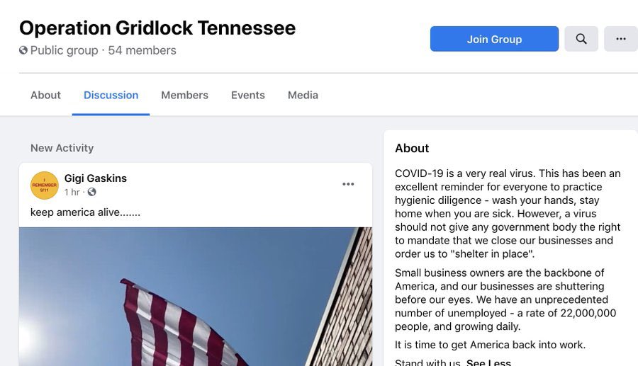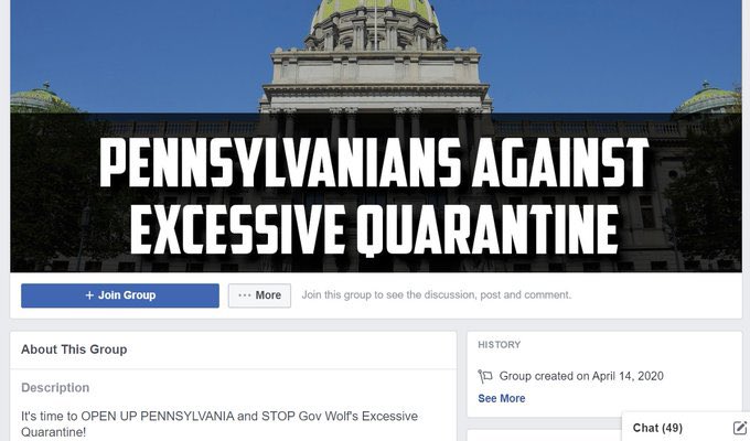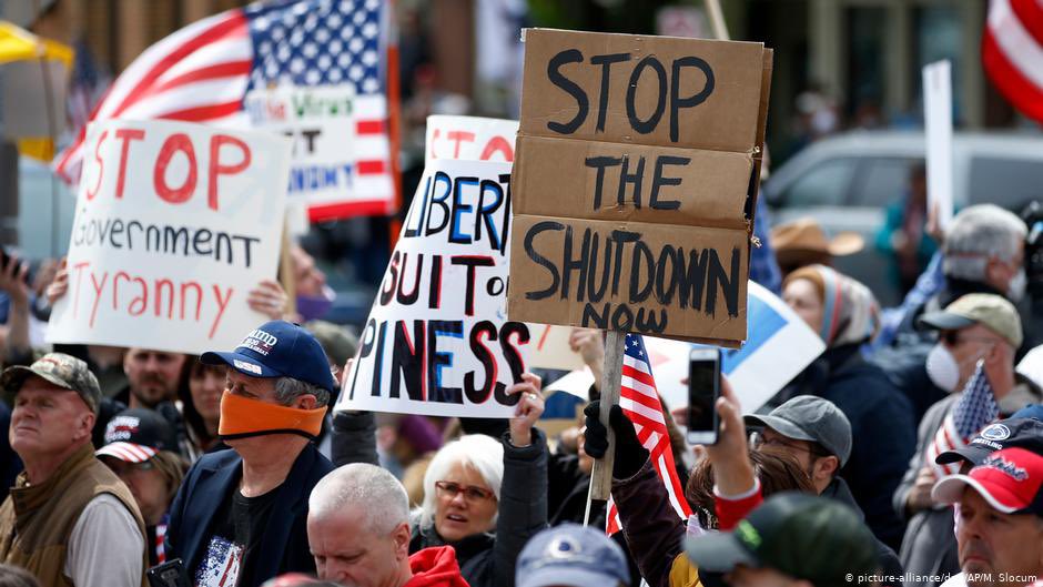 وبنفس الوقت ظهرت عدة مواقع و جروبات على الفيسبوك لكل ولاية في امريكا بتدعي النّاس انهم يطلعوا مظاهرات ويطالبوا بفتح الولايات بشكل كامل كما كانت بالسابق.