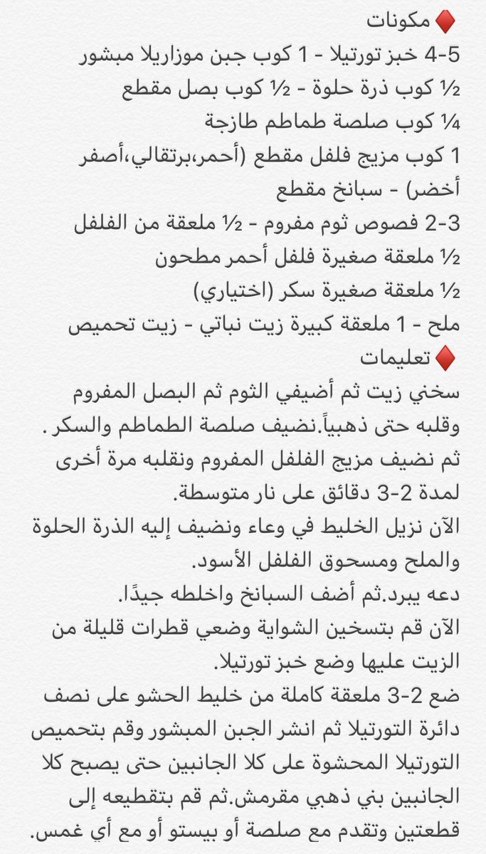 ساندويتش التورتيلا بالجبن والخضار والذرة 🌽 🧀